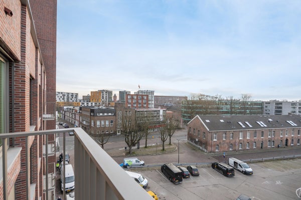 Het balkon is gelegen op het zonnige zuiden en je geniet hier dus lekker lang van de zon met uitzicht over de stad. Wie wilt dat nou niet?