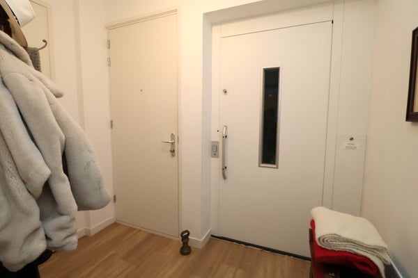 Vanuit de entree via de trapopgang en liftinstallatie (komt uit in het penthouse) toegang naar de zesde verdieping.