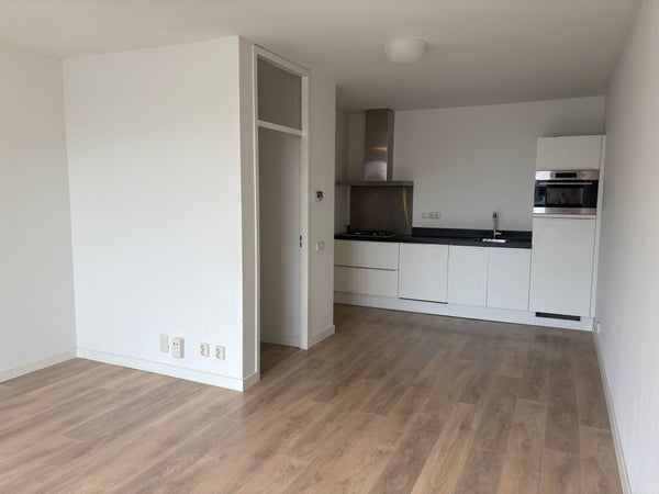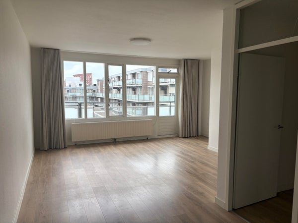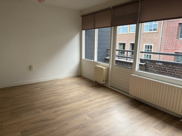 Entree/hal met meterkast en garderobe. Toegang tot slaapkamer van ca. 20m2 met aangrenzend een badkamer met douche, wastafel en radiator. Via trapopgang naar de bovengelegen verdieping. Overloop met toegang tot c.v. kast met aansluiting wasmachine en een aparte moderne toiletruimte. Voorts toegang tot een ruime woonkamer met moderne open keuken voorzien van inbouwapparatuur. Vanuit deze ruimte tevens toegang tot een balkon. Op deze verdieping bevindt zich ook de tweede slaapkamer met toegang tot tweede balkon. Het appartement is volledig gerenoveerd, er worden nog nieuwe kozijnen met HR glas geplaatst. Het appartement is niet geschikt voor woningdelers.
