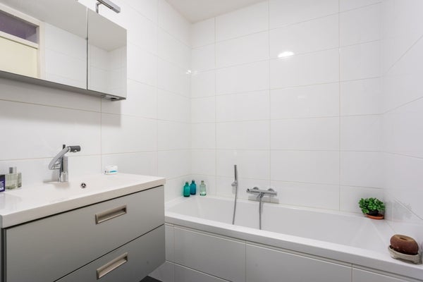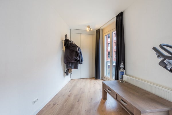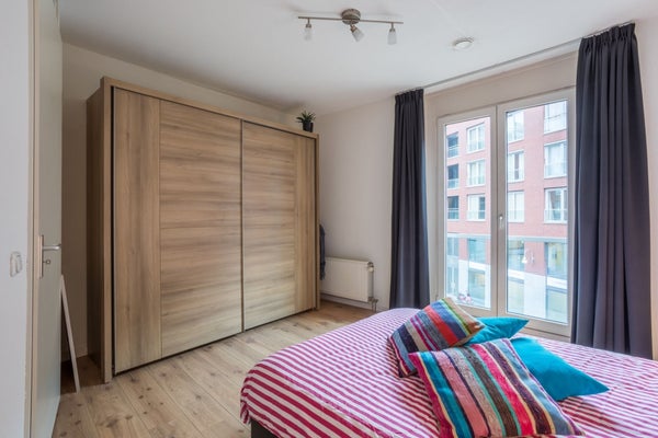 Slaapkamer I voorzien van een 2-tal verdiepingshoge ramen (draai-kiep) met Frans balkon en beschikt over een ingebouwde kast. Slaapkamer II voorzien van een verdiepingshoog raam (draai-kiep) met Frans balkon. De badkamer bestaande uit een luxe inrichting, voorzien van een inloopdouche, wastafel, ligbad en een nette wand- en vloerbetegeling. Het separate toilet is voorzien van hangcloset met inbouwreservoir en fonteintje en beschikt over dezelfde wandafwerking als de badkamer. De inpandige berging beschikt over aansluitpunten ten behoeve van de wasapparatuur en opstelplaats voor de cv-combiketel en warmte-terugwin-unit. Dit appartement beschikt over een parkeerplaats gelegen in de parkeergarage onder het appartementencomplex. De parkeergarage is inpandig (via de lift) bereikbaar. Berging is gelegen in de kelder.