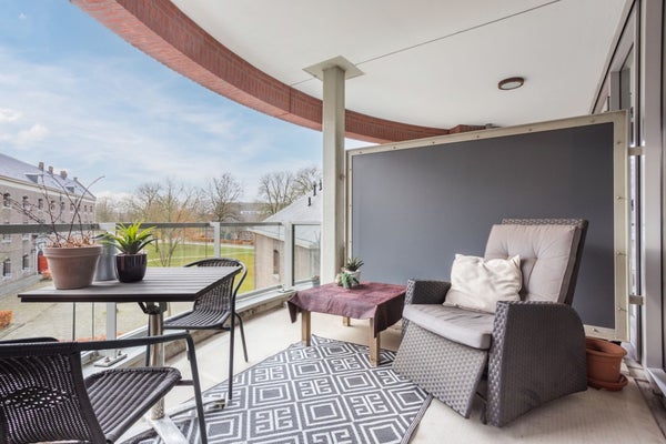 Dit drie-kamerappartement is gelegen in de prachtige ellipsvormige toren van Markendaal. Het appartement is circa 100m² met een royaal balkon op het zuidoosten van ca 13m². Het appartement biedt een fraai uitzicht over het terrein van de (voormalig) Seeligkazerne. Het appartement is voorzien van een ruime woonkamer met veel lichtinval, een open keuken met onder andere een kookeiland en twee royale slaapkamers. Parkeren en opbergen is mogelijk in de comfortabele parkeerkelder van Q-parking. Daarnaast is er een gezamenlijke fietsenberging. “Markendaal” heeft slechts 2 appartementen per verdieping en ligt aan een aantrekkelijk plein waaromheen de woningen gesitueerd zijn. De vorm van het appartement zorgt voor een speelse uitstraling. De tot de vloer doorlopende ramen versterken het ruimtelijke gevoel. Markendaal ligt midden in een toonaangevend en kwalitatief hoogstaand stadsvernieuwingsgebied in het centrum.