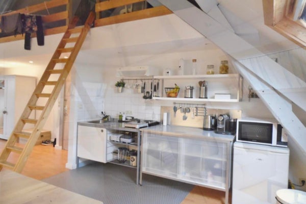 Dit sfeervolle appartement van circa 45 m² beschikt over een eigen woonkamer, slaapkamer en keuken. Het toilet en de douche worden gedeeld met de bewoner op dezelfde verdieping.