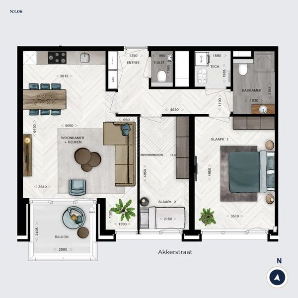 Het appartement beschikt over 2 slaapkamers, een stijlvolle badkamer met inloopdouche, separaat toilet, een praktische berging/technische ruimte én een zonnig balkon op het zuiden. Dankzij de grote raampartijen is de woning heerlijk licht.