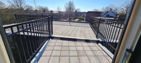 Openslaande deuren naar groot dakterras. Inpandige berging.