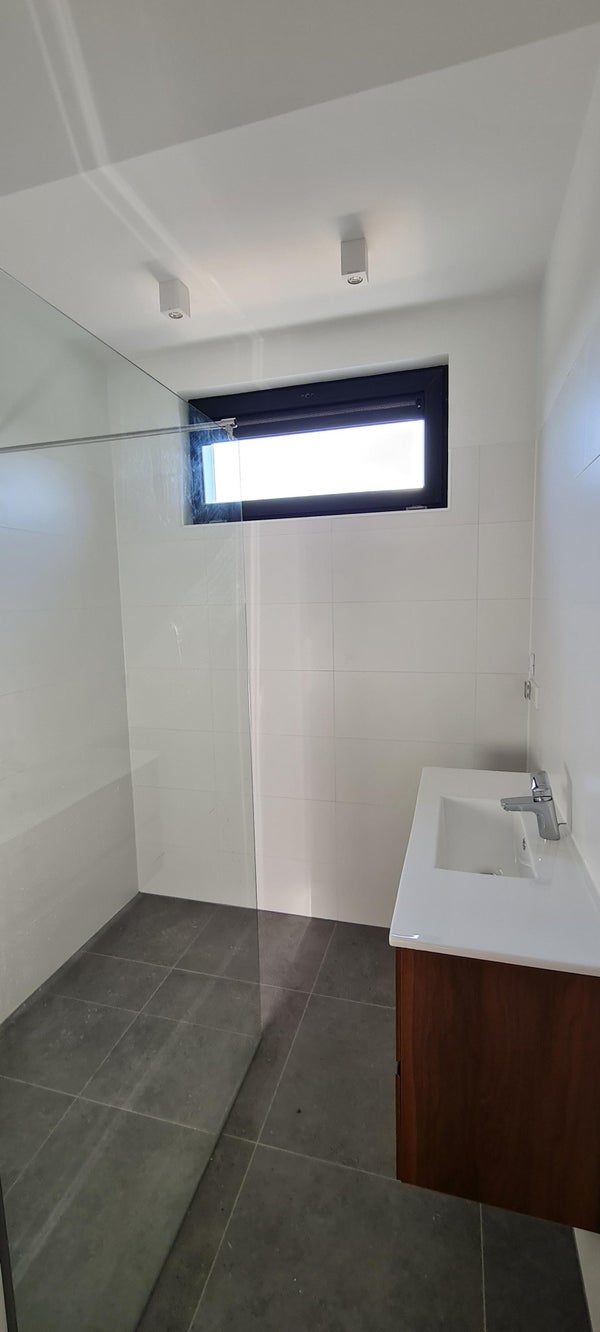 Entree, hal met toilet, twee slaapkamers van circa 12 m2. Een luxe badkamer met een stortdouche van ca. 6 m2.