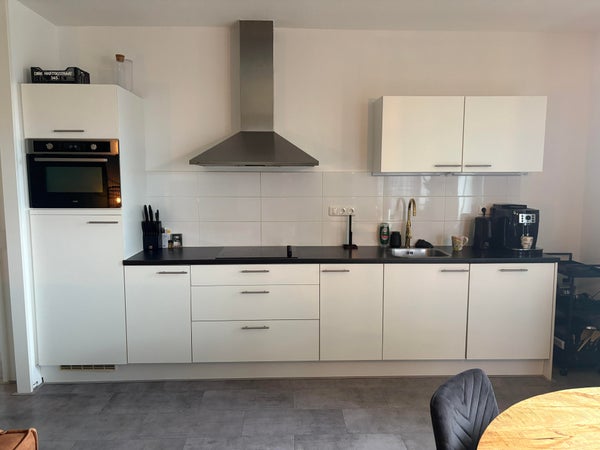 De keuken heeft een keramische kookplaat, combi-magnetron, vaatwasser, wasemkap en een inbouwkoelkast.