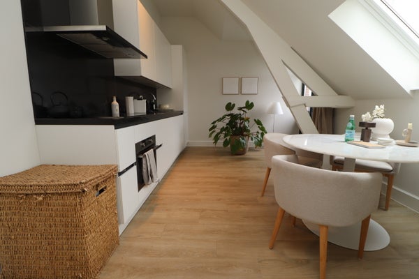 - Moderne keuken voorzien van alle gemakken zoals een combi-oven, een koel- vrieskast, een kookplaat, een RVS afzuigsysteem en een vaatwasmachine.