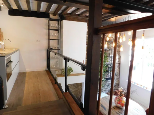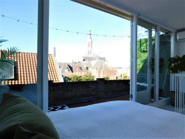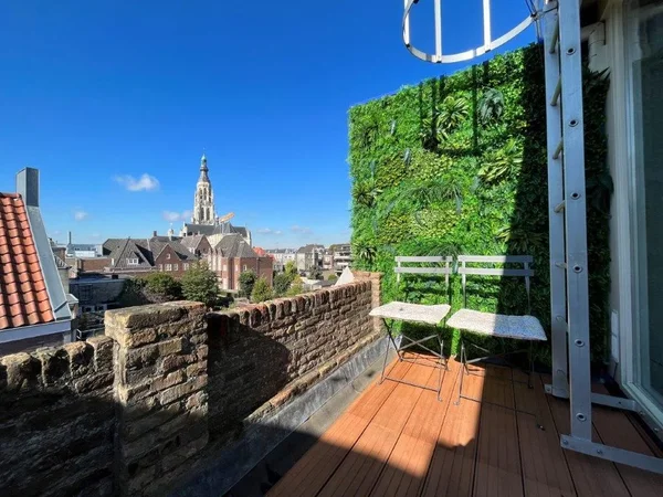 'T Vijf Eeuwen Huys, een monumentaal pand uit 1519, bevindt zich in een van de oudste en meest historische straatjes in het centrum van Breda, de St. Annastraat. Dit karakteristieke huis heeft na de renovatie in 2018 zijn pittoreske uitstraling behouden. Op de begane grond vindt u een ruime woonkeuken met hoge ramen, een haard en een toegangsluik naar de kelder. Verder is er een toilet bereikbaar via een paar traptreden en een tussenverdieping met keukentoestellen. De eerste verdieping biedt een lichte open living ruimte met een mooie haard. De tweede verdieping herbergt een royale badkamer met ligbad, douche en een slaapkamer aan de voorzijde. Op de derde verdieping bevindt zich een open zolderkamer met toegang tot een balkon op het westen. Optioneel is er een parkeerplaats beschikbaar. De woning wordt volledig gemeubileerd aangeboden.