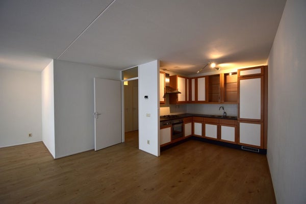 De woonkamer met open keuken is gelegen aan de achterzijde van het appartement en kijkt weg over de nieuwe Haven van Breda met al zijn gelegenheden om heerlijk te eten of drinken. De keuken in hoekopstelling is voorzien van een vaatwasser, oven, gaskookplaat, afzuigkap, koelkast, vriezer en diverse onder- en bovenkasten.