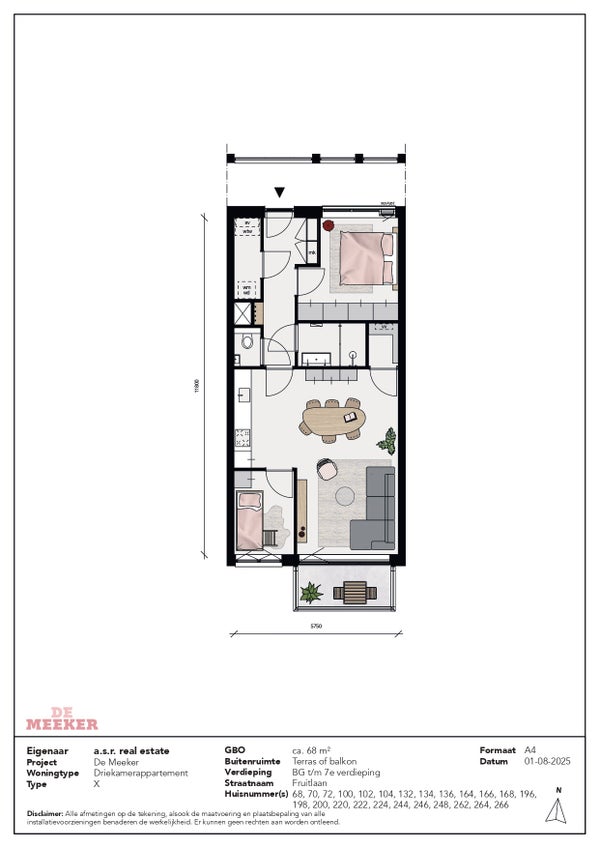 Dit moderne appartement op de begane grond heeft 2 slaapkamers en een woonoppervlakte van ongeveer 68,4 m². Met een terras en een keuken, is het appartement instap klaar met sausklaar afgewerkte wanden. Het beschikt over een energielabel A++, wat zorgt voor lage energiekosten. De huurprijs bedraagt € 1.220 per maand, exclusief € 70 servicekosten. De verhuur start op 9 september 2025, met sleuteloverdracht begin 2026. Het appartement is gelegen in de groene, autoluwe wijk Brabantpark, dichtbij voorzieningen en het centrum van Breda.