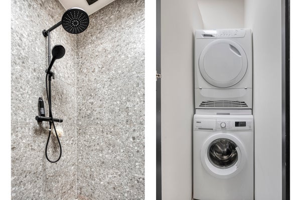 Entree in de ruime woonkamer met half open keuken. De woonkamer is zeer licht door de ramen aan de achter- en zijkant. Aan de achterzijde van het appartement is de half open keuken gelegen. Deze heeft een industriële uitstraling door de mat zwarte afwerking en een graniet look aanrechtblad. De keuken is voorzien van een inbouw koelkast, vaatwasser, kookplaat, oven en afzuigkap. Vanuit de keuken is het dakterras te betreden. Het dakterras heeft een oppervlakte van 25m2! Een heerlijke plek voor de zomerse dagen. Het balkenplafond geeft een authentieke uitstraling. Dit appartement heeft twee slaapkamers aan de voorzijde. Het appartement is voorzien van een visgraad vloer met uitzondering van de keuken. De moderne badkamer heeft een ruime inloopdouche, waskom, toilet en handdoek radiator. Dit appartement beschikt over wasmachine.