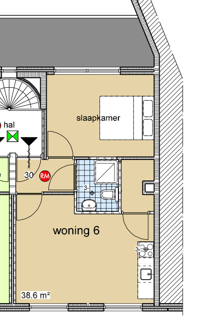 • De totale oppervlakte van de woning bedraagt 40 m2