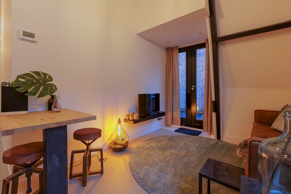 Het appartement heeft een compacte en efficiënte indeling, met een lichte woonkamer die toegang biedt tot de balkon. De open keuken is voorzien van diverse inbouwapparatuur. Verder is er één slaapkamer aanwezig. De moderne badkamer is netjes afgewerkt en beschikt over een wastafel, een wasmeubel, een douche én een toilet.
