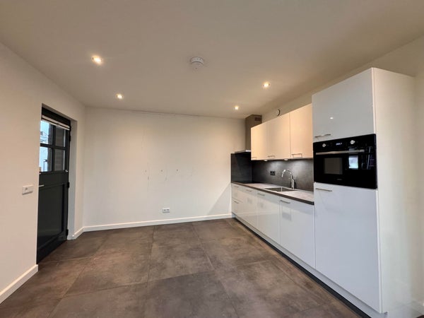 Ruime woonkamer met open keuken. De moderne keuken is voorzien van een koelkast met vriesvak, combi-oven, inductie kookplaat, afzuigkap, spoelbak en vaatwasser. Ruime slaapkamer en aparte badkamer. De badkamer is voorzien van een douche, wastafel met meubel en toilet. Tevens beschikt het appartement over een wasruimte met witgoedaansluiting. Inclusief parkeerplaats op eigen terrein.