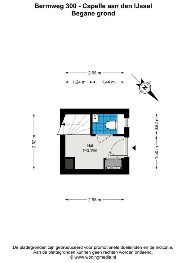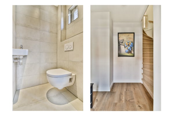 Bij binnenkomst wordt u ontvangen in de hal, waar de trapopgang naar de woonverdieping zich bevindt. Tevens treft u hier het separate toilet met fonteintje.