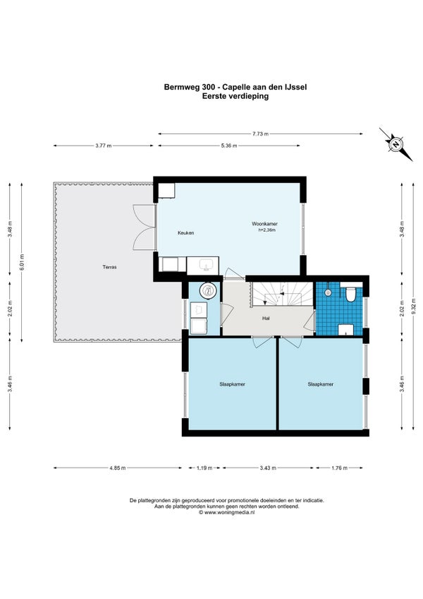 De woning beschikt over drie slaapkamers, een lichte woonkamer met open keuken, een nette badkamer en een ruim dakterras. In de gezellige straat treft u diverse speciaalzaken en op steenworp afstand bevindt zich een supermarkt.