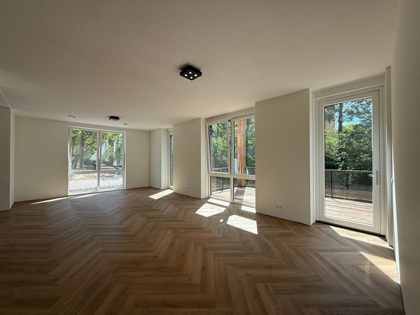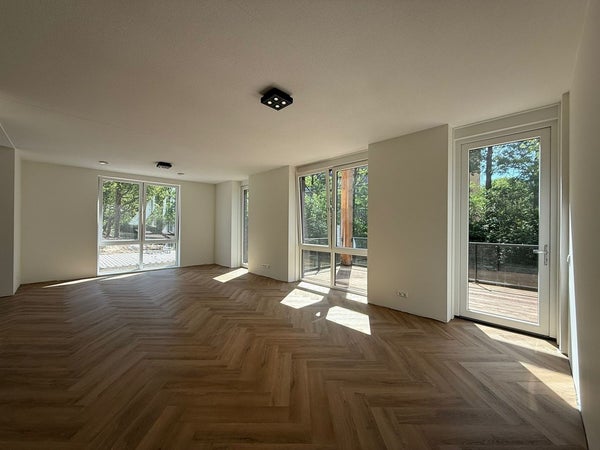 Vanuit de woonkamer toegang tot het zeer ruime terras 29.5 m2.