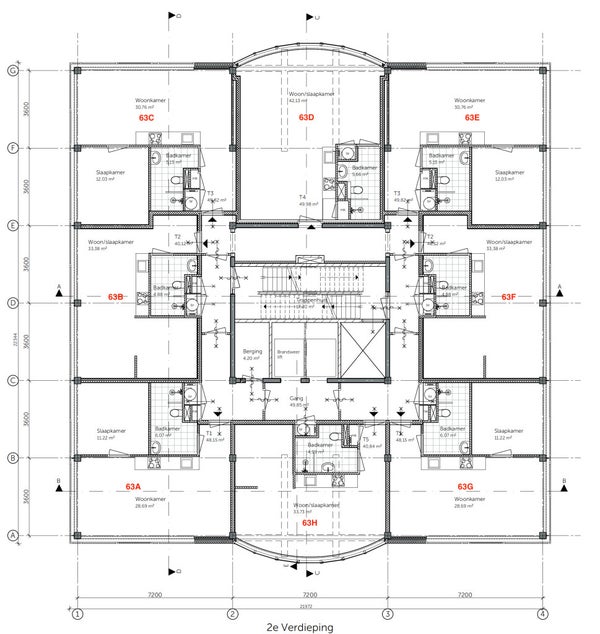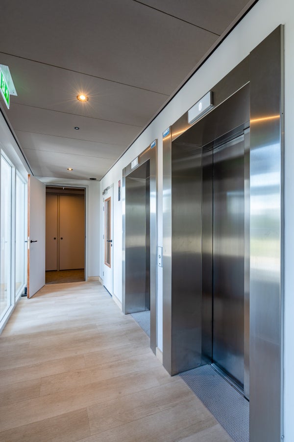 Gezamenlijke entree op de begane grond met postbussen, bellentableau en liften. 2e verdieping Binnenkomst in de woonkamer met open keuken. De woonkamer is voorzien van strakke witte muren, een lichte PVC vloer, raambekleding, een bank, salontafels, kleed, tv-meubel, tv en een eettafel met stoelen. De woonkamer is ingericht met een zit- en eetgedeelte, wat een goede scheiding maakt tussen kook en leefruimte. De keuken is voorzien van een inductiekookplaat, afzuigkap, vaatwasser en veel opbergruimte. Verder is er bestek, glazen en service aanwezig, evenals een strijkijzer, strijkplank, koffieautomaat en waterkoker. Vanuit de woonkamer is de slaapkamer bereikbaar. De slaapkamer is voorzien van een ruime kledingkast en een 2-persoonsbed. De badkamer beschikt over een ruime inloopdouche, wastafel met meubel en hangend toilet. In het gebouw zijn gezamenlijke was- en droogruimtes aanwezig op de begane grond en op de 3e verdieping. Daarnaast is er een gezamenlijke fietsenberging.
