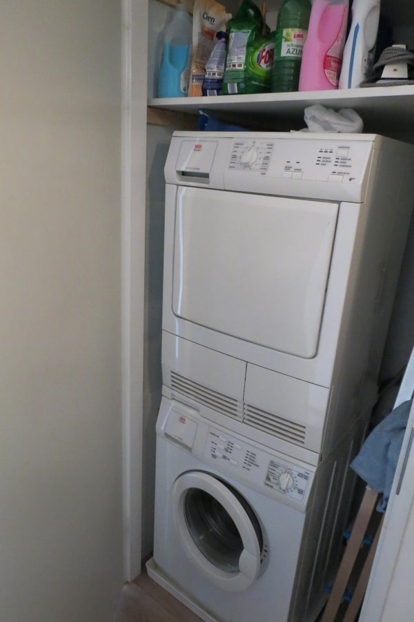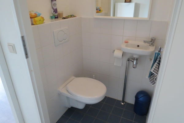 De entree geeft toegang tot de ruime slaapkamer, een apart toilet met fonteintje en een kast met daarin een wasmachine en wasdroger. De badkamer is voorzien van een wastafel, een ligbad met een douche.