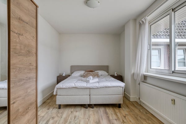 Het appartement beschikt over twee ruime slaapkamers en een moderne badkamer met wastafel, inloopdouche en designradiator.