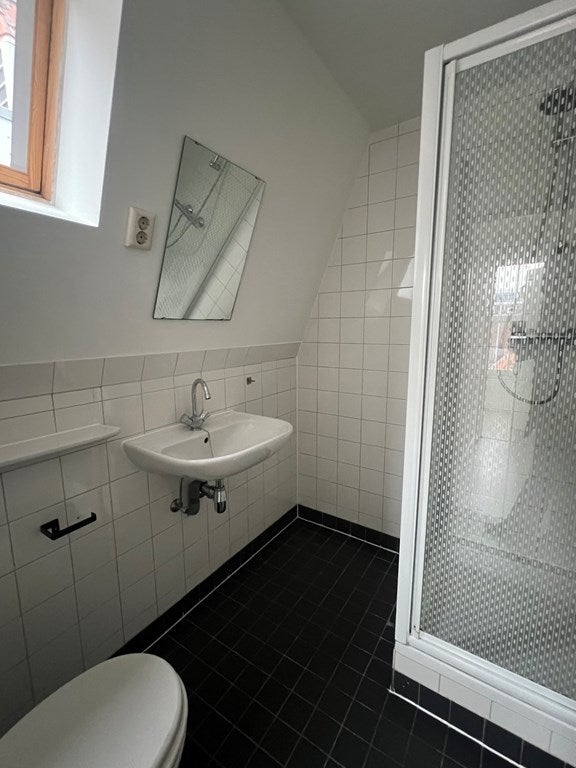 Vanuit de gang bereik je de nette badkamer met douche, toilet, wastafel en designradiator. Vanuit de gang is er toegang tot alle vertrekken.
