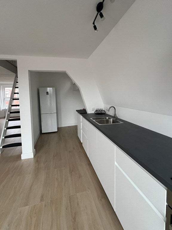 De keuken is volledig gerenoveerd en beschikt over een inductieplaat, oven en vaatwasser. De woonkamer is ruim en erg licht door de grote ramen.