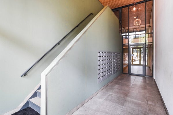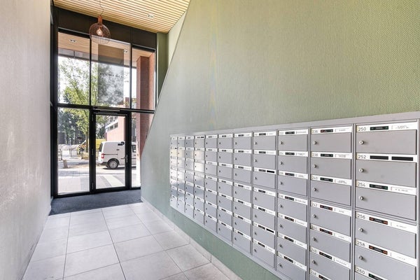 Begane grond: afgesloten entree met brievenbus, intercom en toegang tot lift of trap.