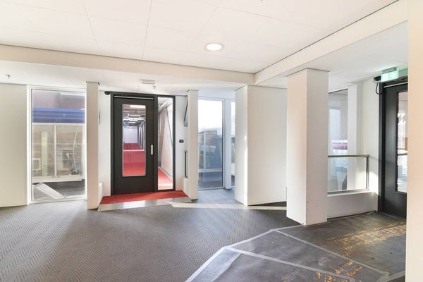 Bij binnenkomst in het complex tref je een nette, beveiligde entree met brievenbussen, video-intercom, trappenhuis en een lift die je comfortabel naar de 8e verdieping brengt.