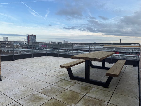 Dit moderne appartement, gelegen aan de rand van het centrum van Delft, biedt 43 m² woonoppervlak. Het bevindt zich op de derde verdieping van een galerijflat, met 2 kamers, waaronder een slaapkamer van 3.13 x 3.08 m en een woonkamer van 21 m² met een open keuken. De keuken is uitgerust met een inductiekookplaat, vaatwasser, en combimagnetron. Recentelijk gebouwd in 2023, is het appartement goed geïsoleerd en energielabel A+++ geclassificeerd. De badkamer heeft een inloopdouche, wastafel en toilet. Het gebouw beschikt over een lift, gemeenschappelijke dakterras en fietsenberging. Huurprijs bedraagt € 1.185,- per maand exclusief servicekosten, die € 76,18 bedragen. Er is een waarborgsom van € 2.270,- en het appartement is beschikbaar voor permanente bewoning.