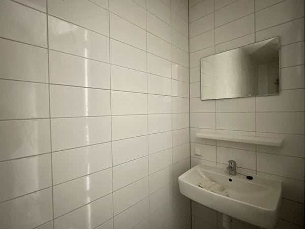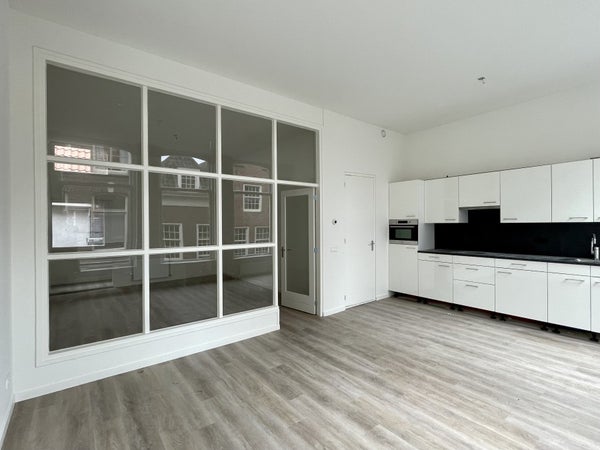 Bij binnenkomst word je verwelkomd in een hal met een separaat toilet. De badkamer, voorzien van wastafel en douche, bevindt zich ook in deze hal. De woonkamer geniet van veel natuurlijk licht dankzij de grote ramen. De open keuken draagt bij aan een ruimtelijk gevoel. De slaapruimte is afgescheiden door een glazen wand die afsluitbaar is. Hier bevindt zich tevens een (inloop) bergkast.