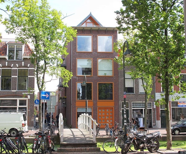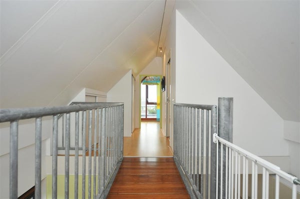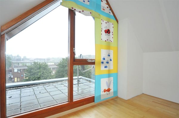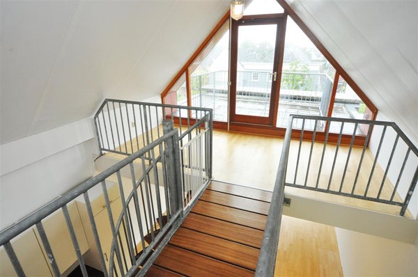 Vierde verdieping: via een open trap bereikbare vide met werkplek met deur naar dakterras aan de gracht (ca. 4.00 x 1.85) op het zuid-westen en dus heerlijk op de zon. Het vrije uitzicht over de daken van de binnenstad is verbluffend en zit hier heerlijk privé. Overloop, vaste kast met wasmachine aansluiting, 2e kleine badkamer met douche en toilet, 2e slaapkamer (ca. 10m2) met glazen pui en plat dak met mogelijkheid voor een klein terras.