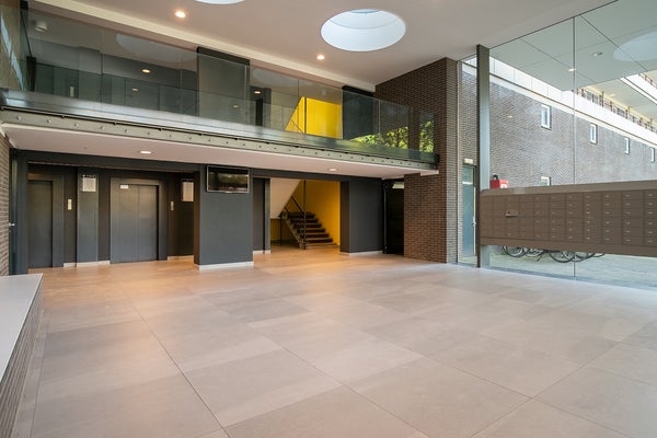 Begane grond: afgesloten entree met huistelefoon en toegang tot de bergingen. Trappenhuis + lift naar verdiepingen.