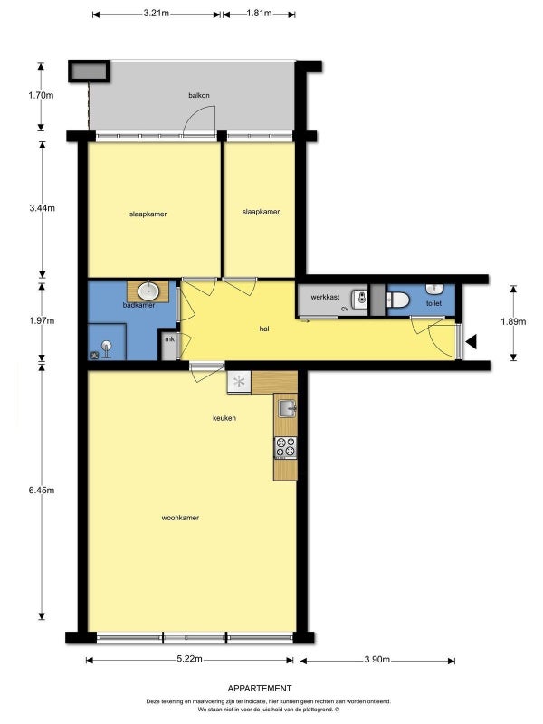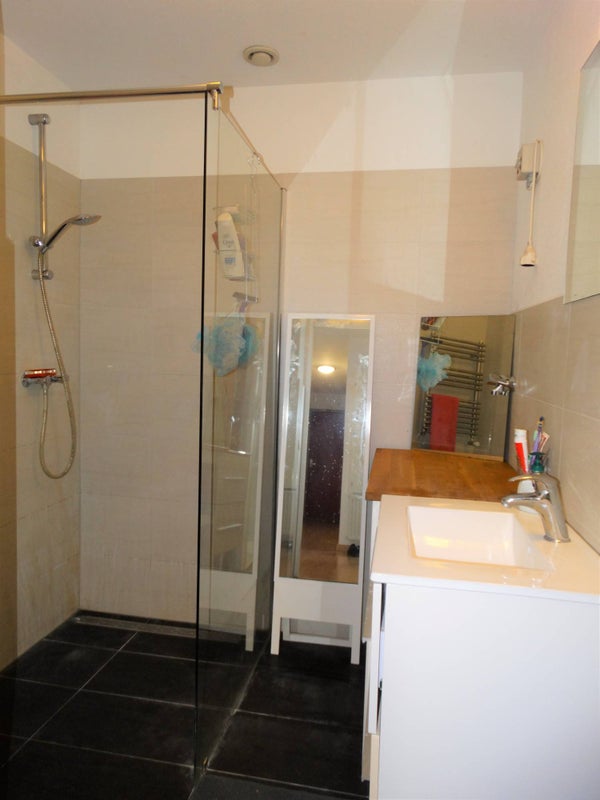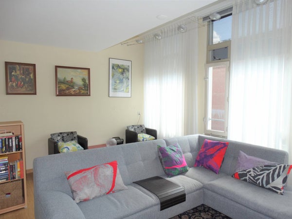 De badkamer is voorzien van douche en wastafel, het toilet is apart. Verder is er een handige bergkast met wasmachine en cv-installatie. Het hele appartement is netjes afgewerkt, voorzien van laminaat, dubbel glas en zonwering.