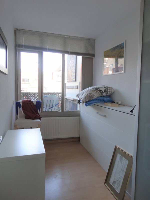 De hoofdslaapkamer beschikt over een tweepersoonsbed, ruime kledingkast en toegang tot het royale balkon op het noorden. De tweede kamer is ideaal als logeer- of werkkamer.