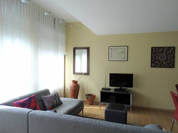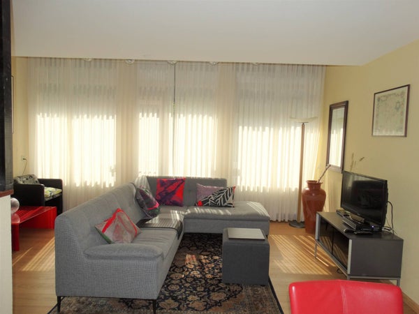 Het lichte appartement (ca. 70 m²) bevindt zich op de eerste verdieping en is volledig gemeubileerd. Vanuit de woonkamer met grote ramen en veel daglicht heb je toegang tot een compleet ingerichte open keuken met gezellige eethoek en comfortabel zitgedeelte.