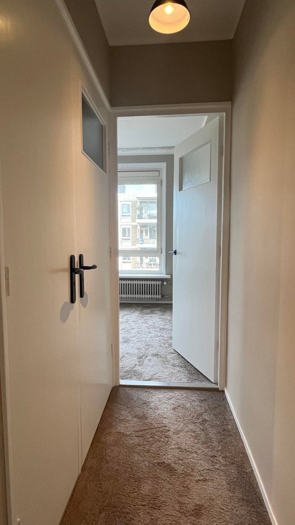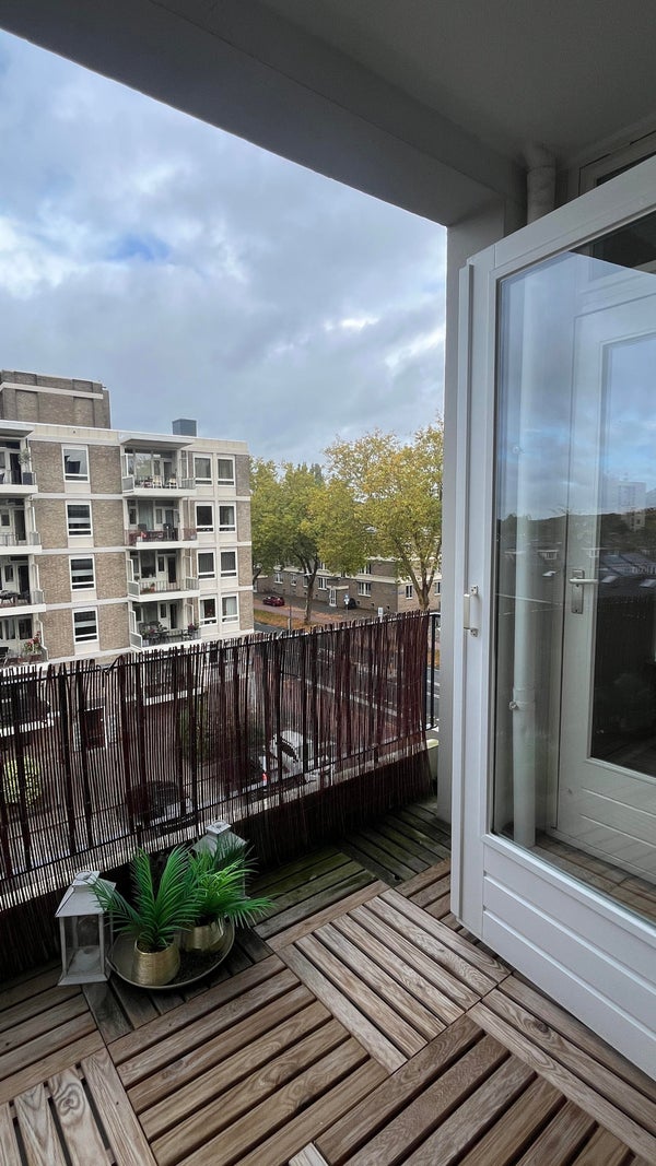 Bij binnenkomst kom je in de ruime hal met toilet. De lichte woonkamer heeft royale raampartijen, wat zorgt voor een prettige, open sfeer. Vanuit de woonkamer is het kleinste balkon bereikbaar – perfect om op elk moment van de dag te genieten van zon of schaduw.