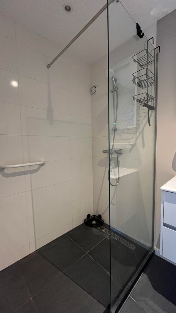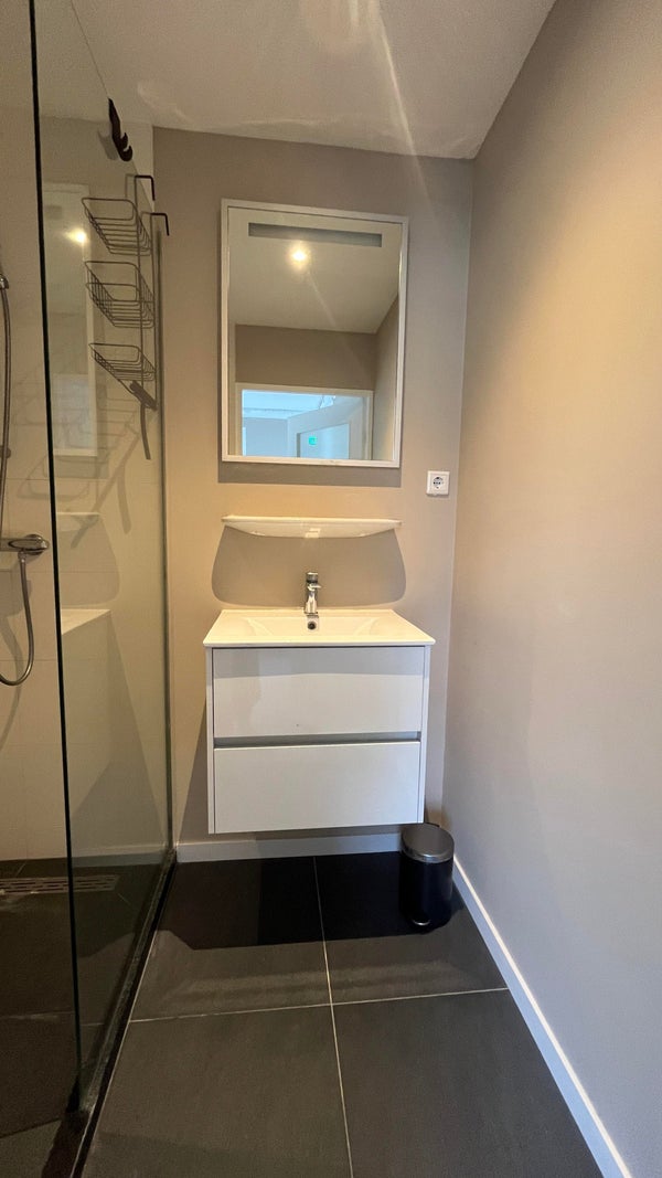 - De hoofdslaapkamer heeft een directe verbinding met de moderne badkamer, voorzien van een inloopdouche en wastafelmeubel.
