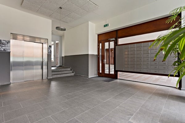 Op de begane grond treffen we het gezamenlijke bellentableau en de brievenbussen aan. De centrale hal is royaal en middels de lift zijn de verdiepingen te bereiken.