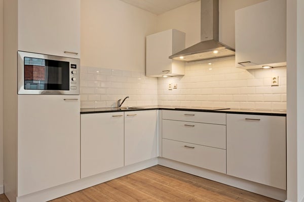 De nieuwe open keuken beschikt over een inductieplaat, afzuigkap, vaatwasser, koel/vriescombi en voldoende kastruimte.
