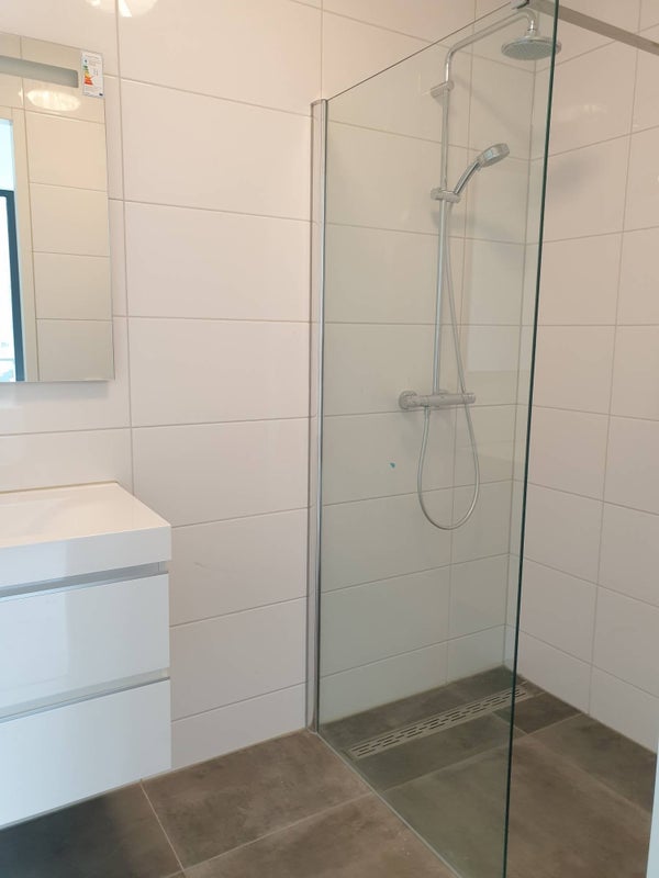 De badkamer is voorzien van een douche en wastafel. Separaat toilet en ruimte met aansluiting voor de wasapparatuur.