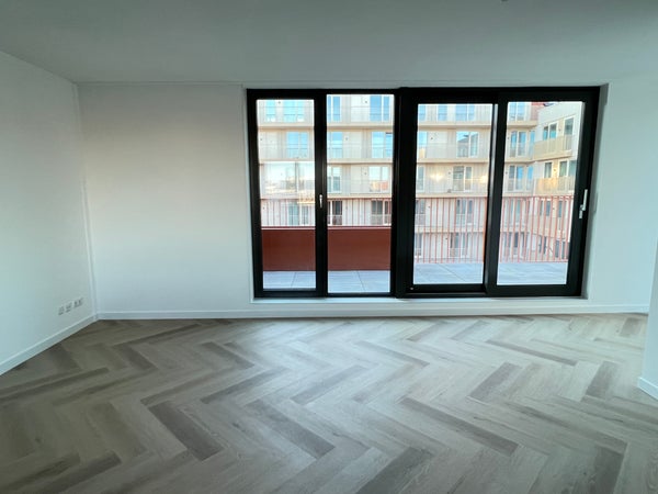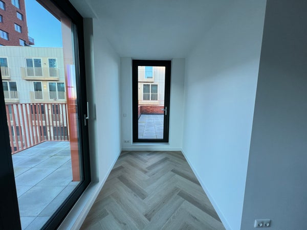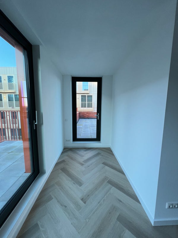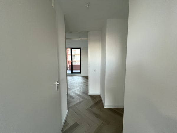 Het gehele appartement is met veel aandacht voor detail afgewerkt. De glad gestucte en wit gespoten wanden vormen een prachtig contrast met de lichte visgraat PVC-vloer, die samen zorgen voor een frisse, moderne uitstraling en een optimale lichtinval. Voor extra comfort is het appartement voorzien van vloerverwarming, waardoor elke ruimte aangenaam warm en behaaglijk aanvoelt. Elk element in het interieur is zorgvuldig gekozen om een gevoel van ruimte, luxe en warmte te creëren, waardoor dit appartement direct uitnodigt om je thuis te voelen
