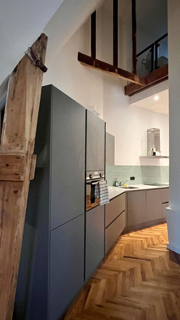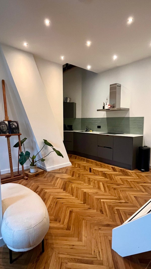 Wat opvalt als je binnenkomt is de ruimte, de hoogte en het niveau van afwerking. Het appartement is recentelijk opgeleverd en voorzien van nieuwe houten vloeren, keuken en sanitaire voorzieningen.