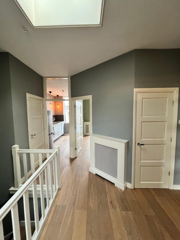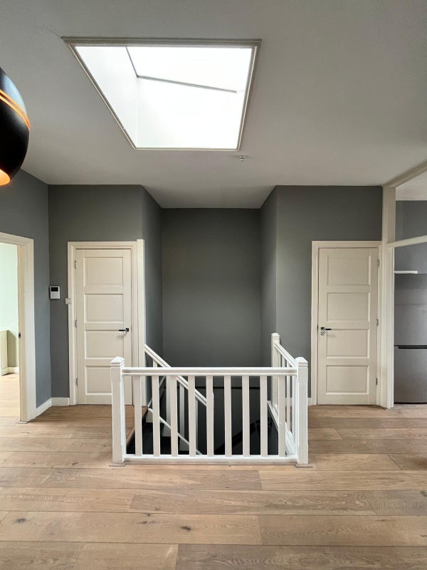 - Ruime overloop met groot daklicht, kast met wasmachine- en drogeraansluiting, opstelplaats cv-combiketel, extra bergruimte en toilet met vrijhangend closet