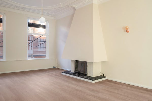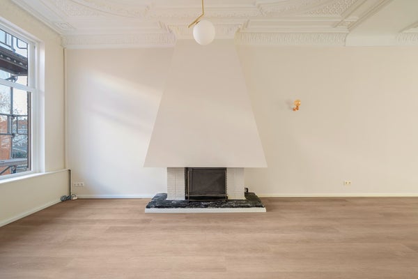 Dit hoogwaardig afgewerkte appartement is beschikbaar voor de eerste huurder na renovatie en combineert moderne luxe met authentiek karakter, inclusief stunning originele plafondornamenten. Designer verlichting is door het hele appartement aanwezig en de woonkamer beschikt over een open haard, wat een warme en stijlvolle sfeer creëert.