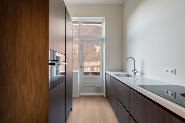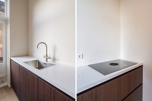 De moderne keuken is gelegen aan de achterzijde van het pand en is volledig uitgerust met inbouwapparatuur. De keuken is ook voorzien van een Quooker, die direct kokend water levert. Vanuit de keuken is er directe toegang tot het zuidwest-georiënteerde balkon, perfect om van de middag- en avondzon te genieten.