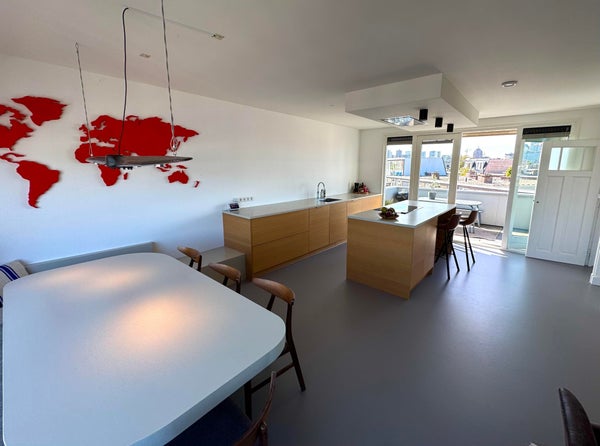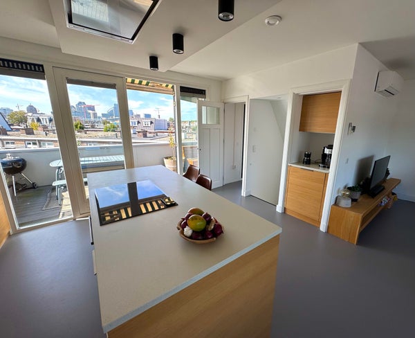 Per 1 December 2025 hebben wij dit prachtig gemeubileerde luxe woning te huur met uitzicht op de skyline vanaf het ruime dakterras. Word wakker met uitzicht op de skyline, drink je ochtendkoffie in de zon op het dakterras, stap op je fiets en ben binnen vijf minuten in het stadscentrum of binnen vijftien minuten op het strand.
