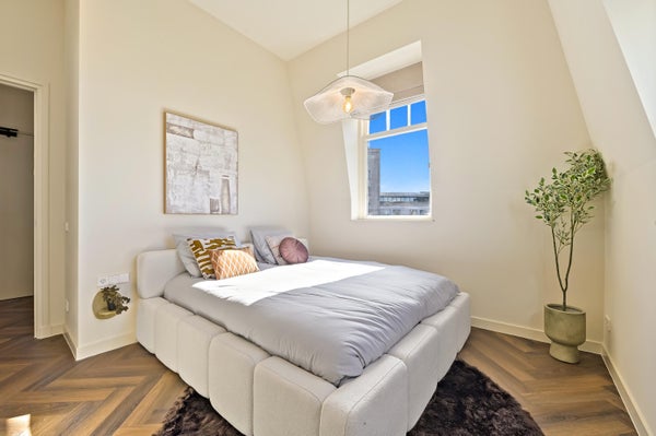 Dit heerlijke eenslaapkamer appartement is gelegen op de top etage. De entree is bereikbaar via de centrale voordeur van het indrukwekkende gebouw. Trap naar de tweede etage. Hal met toegang tot alle vertrekken. Direct aan de rechterzijde toegang tot de fenomenaal gerenoveerde woonkamer met visgraat vloer en open keuken. De woning is door de plafondhoogte en raampartijen licht en luxe. De keuken is van alle gemakken voorzien, denk aan een vaatwasser, een inductie kookplaat, een koelvriescombinatie, een Quooker voor direct kokend water en voldoende kastruimte. Terug in de hal toegang tot de schitterende badkamer met ligbad, inloopdouche, wastafel met meubel, spiegel met verlichting en verwarming en twee handdoek radiatoren. Separaat toilet gerenoveerd in dezelfde stijl als de badkamer. De prettige en ruime slaapkamer (13.2m2) is voorzien van een tweepersoonsbed en een handige kledingkast.
