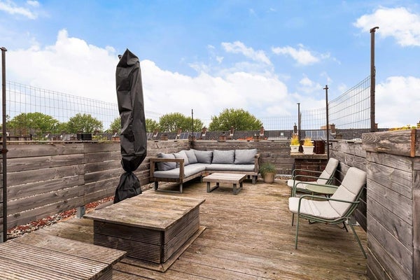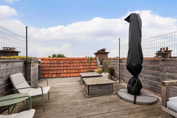 Het grote dakterras biedt veel zonlicht en privacy - een perfecte plek om te ontspannen.