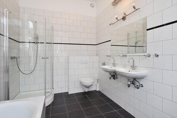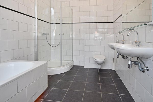 Dit appartement aan de De Ruijterstraat 82 in Den Haag heeft een royaal woonoppervlak van 154 m², verspreid over twee verdiepingen. De gesloten centrale entree leidt naar de eerste etage, waar de lichte en ruime woon-eetkamer zich bevindt, inclusief een open keuken met moderne apparatuur en toegang tot een zonnig terras van 19 m² op het zuidwesten. De eerste verdieping heeft ook een grote slaapkamer en een luxe badkamer. Via een trap bereik je de tweede verdieping met een overloop, een separaat toilet, een master bedroom en nog twee slaapkamers, alsook een tweede badkamer. Het gebouw ligt in een rustige straat in het centrum, vlakbij winkels, restaurants en openbaar vervoer. Minimale huurovereenkomst is één jaar, met een maand borg en servicekosten van € 25,- per maand.