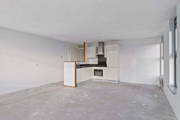 De royale woonkamer van ca. 45 m² vormt het hart van de woning en biedt volop ruimte voor een comfortabele zithoek en een gezellige eettafel. Vanuit de woonkamer heb je toegang tot het balkon van ca. 7 m², een heerlijke plek om even buiten te zitten. De moderne semi-open keuken is volledig uitgerust met inbouwapparatuur zoals een oven, kookplaat, afzuigkap, vaatwasser en koelkast met vriesvak – perfect voor de kookliefhebber.